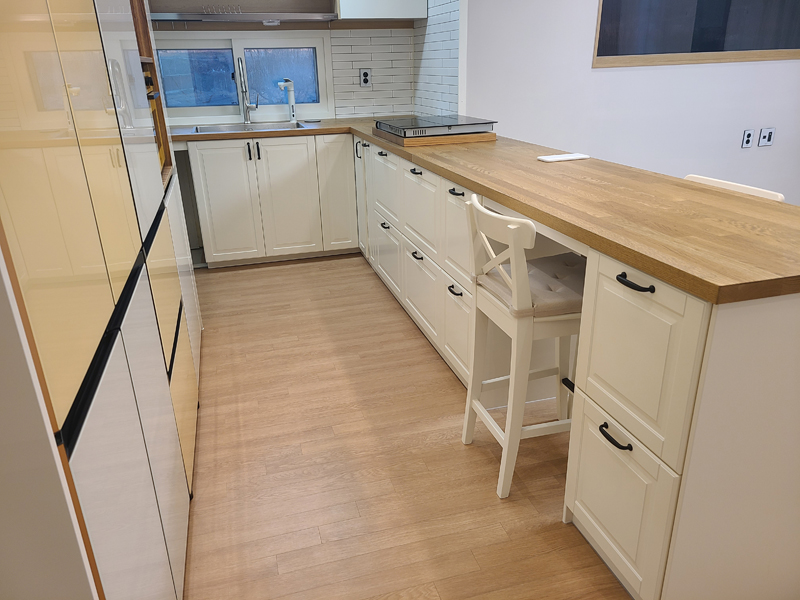 물론 위에 언급한 과정 이외에도 싱크볼이나 수전(특히 이케아 원목 상판 시공 시에는 선택 가능한 수전이 제한적이라 사전에 설치업체에 문의 후 구입해야 한다)등을 선택하기 위해 알아봐야 하고 식기세척기나 인덕션도 사이즈에 맞게 타공 하기 위해서는 미리 제품 사이즈를 확인해야 하기 때문에 자잘하게 신경 써야 하는 과정이 필요하다.